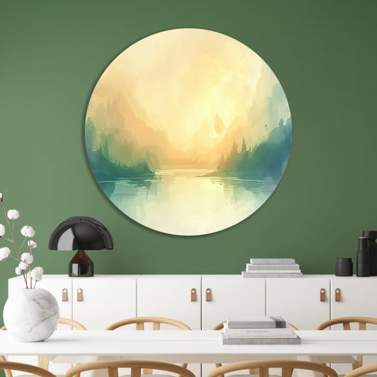 Digitale kunst serene berglandschap zonsondergang aluminium muurcirkel