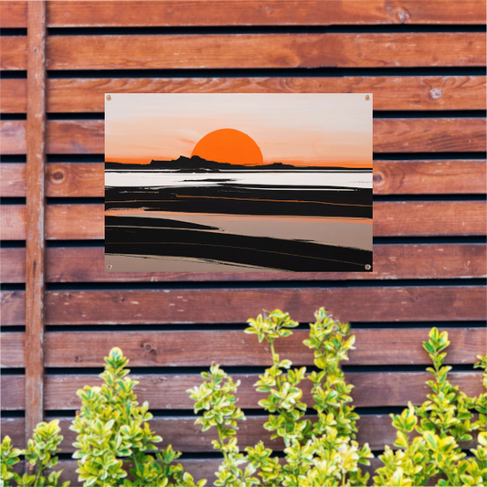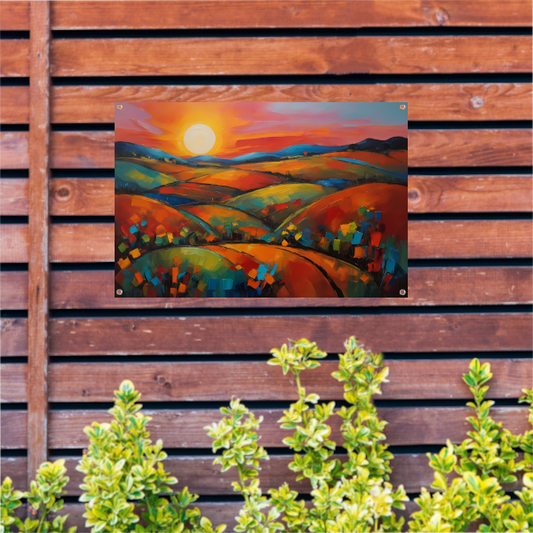 Levendige Impressie van een Kleurrijke Zonsondergang tuinposter