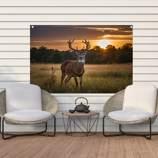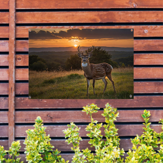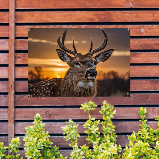 Majestueus hert bij een prachtige zonsondergang tuinposter