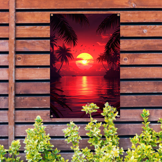 Tropische zonsondergang met palmbomen tuinposter