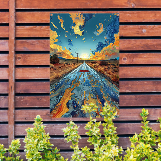 Digitale Kunst van een Weg in de Zonsondergang tuinposter