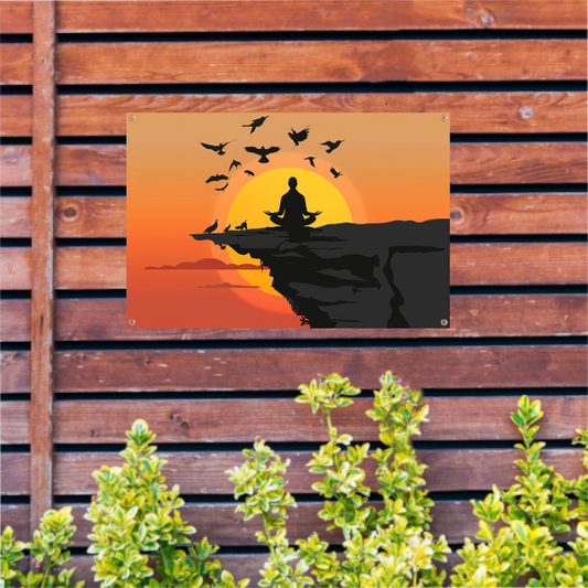 Silhouet Zonsondergang Meditatie tuinposter