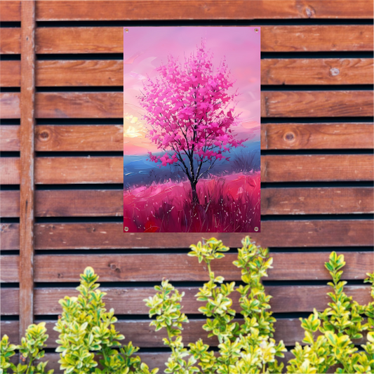 Kleurrijke Boom bij Expressieve Zonsondergang tuinposter