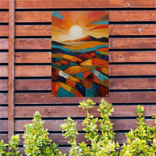 Abstracte Zonsondergang in Levendige Kleuren tuinposter
