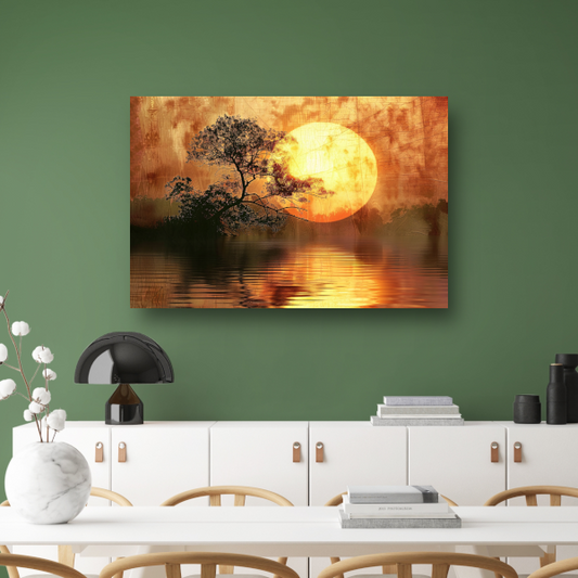 Minimalistische schildering van kleurrijke zonsondergang canvas