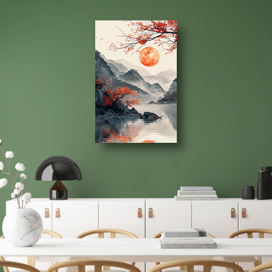 Rode Maan boven Berglandschap met Meer canvas