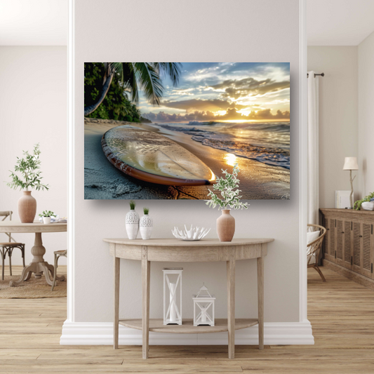 Persoon Contempleert Zonsondergang in Vurig Landschap canvas