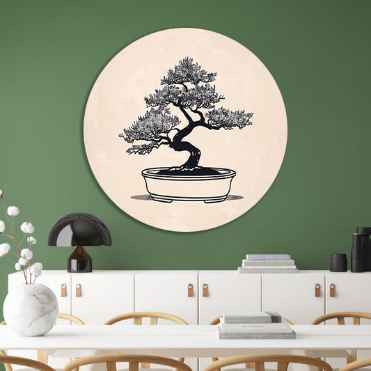Minimalistische Bonsai Kunst in Zwart-Wit aluminium muurcirkel