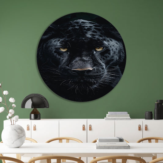 Portret van een zwarte panter met gele ogen forex muurcirkel