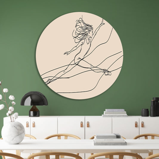 Gracieus danseres lijntekening in sprong aluminium muurcirkel