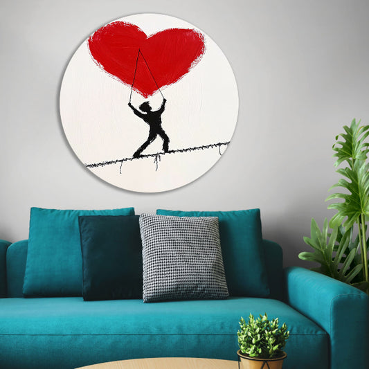 Figuur met een hart op een koord aluminium muurcirkel