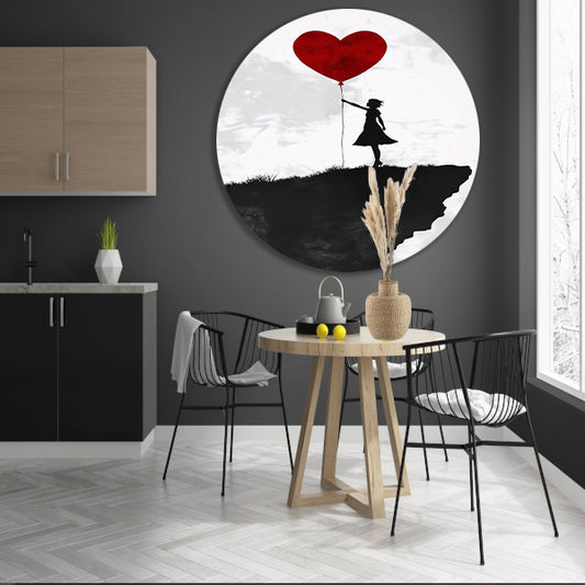 Meisje met Rode Ballon op Klif aluminium muurcirkel