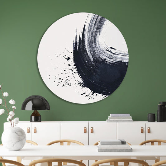 Zwarte Borstelstreek met Spetters op Wit forex muurcirkel