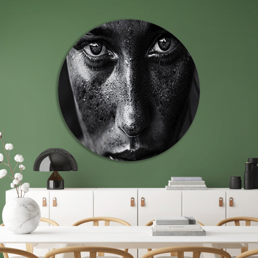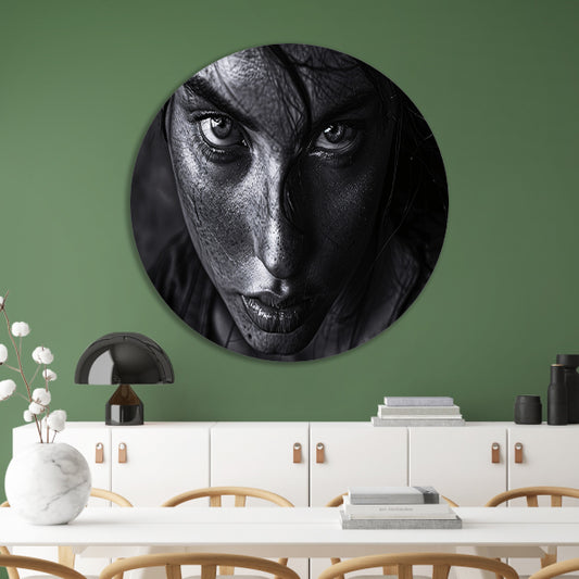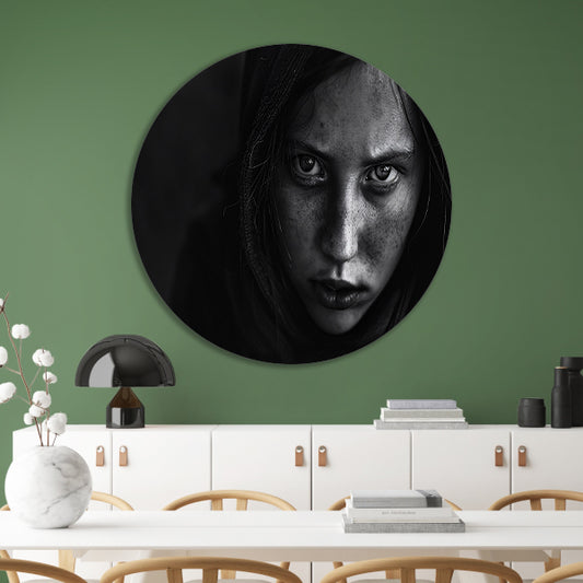Zwart-wit portret van intense vrouw forex muurcirkel