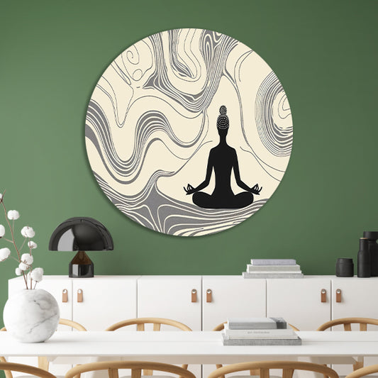 Mediterende silhouet met abstracte lijnen forex muurcirkel