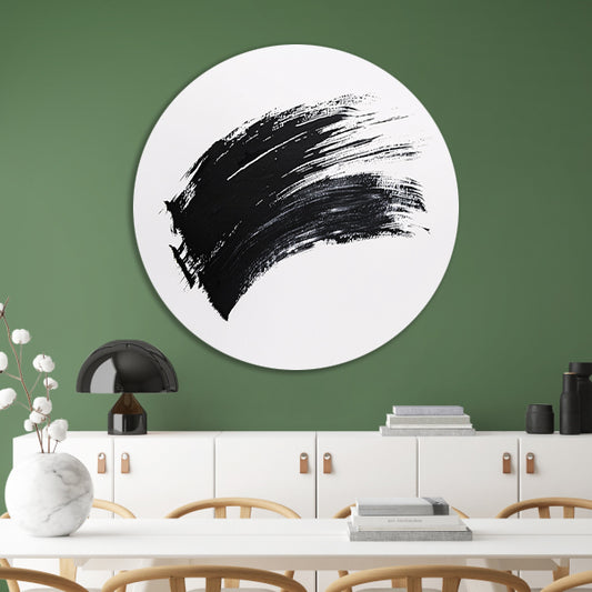 Abstracte zwarte penseelstreek op wit forex muurcirkel