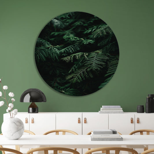 Close-up van Groene Dennennaalden met Bokeh forex muurcirkel