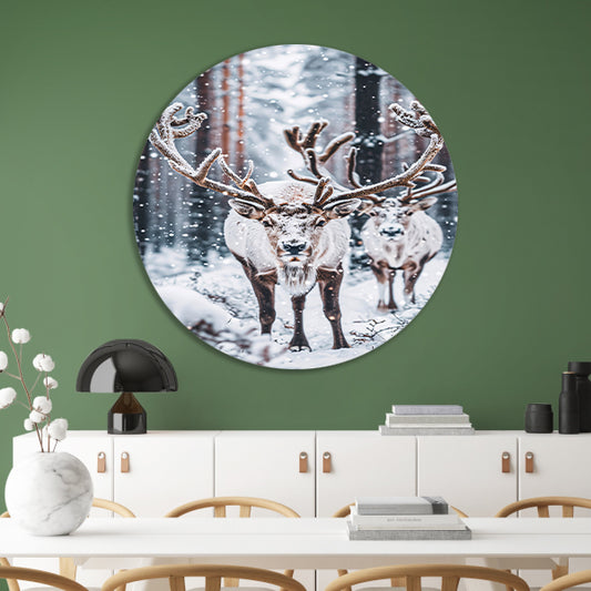 Twee Rendieren in Besneeuwd Bos forex muurcirkel