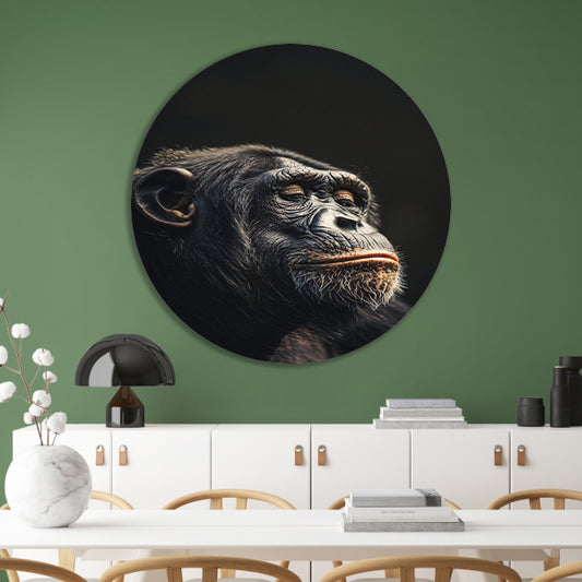 Indringende blik van een wijze chimpansee forex muurcirkel