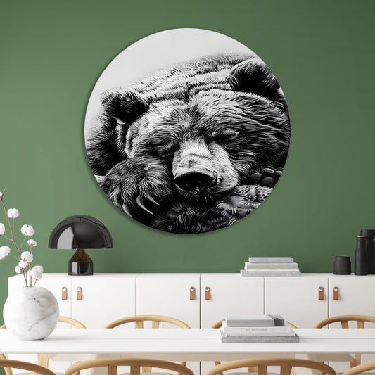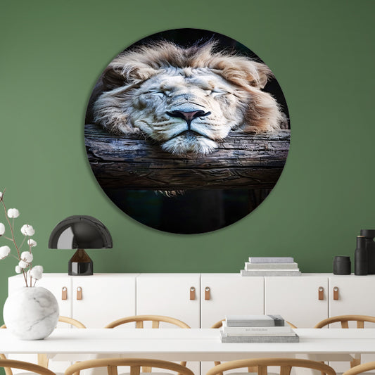 Zwart-wit portret van slapende leeuw forex muurcirkel