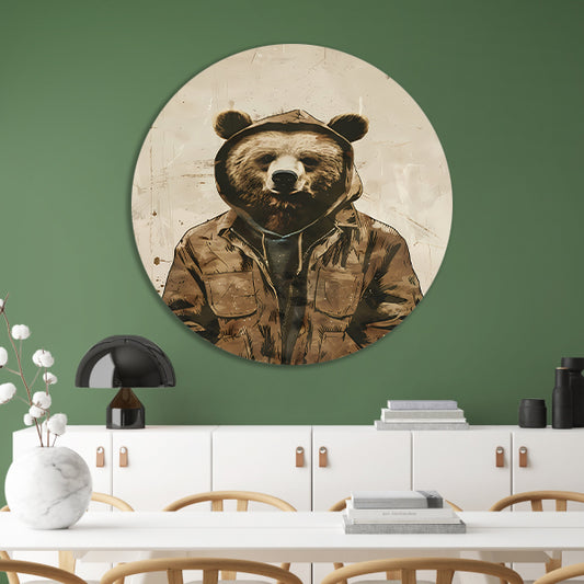 Beer met Hoodie en Jas in Sepia forex muurcirkel