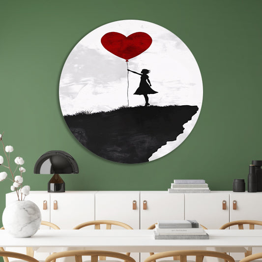 Meisje met Rode Ballon op Klif forex muurcirkel