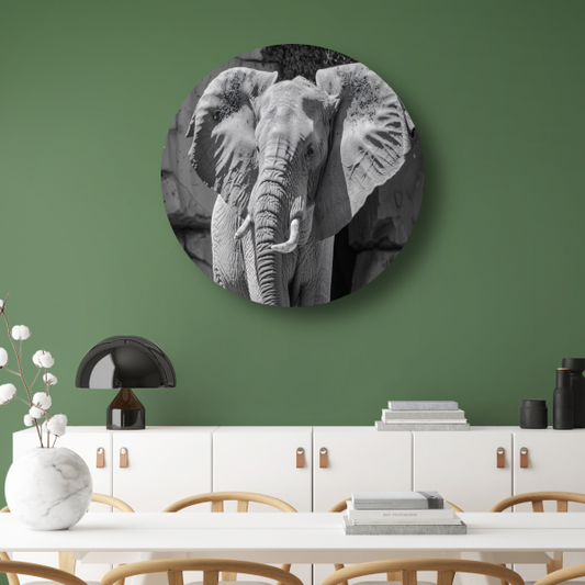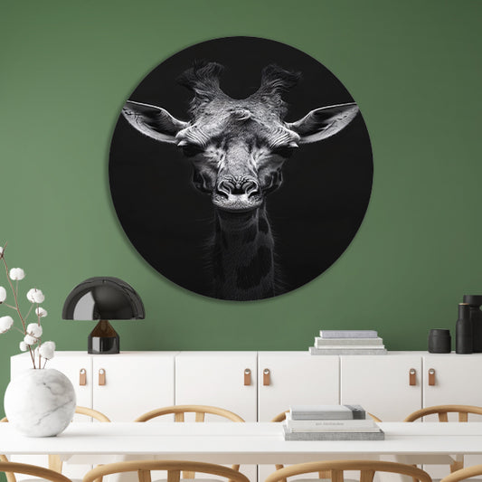 Gebroken gezicht in zwart-witcontrast aluminium muurcirkel