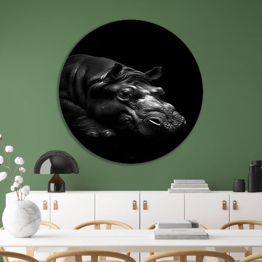 Zwart-wit portret van een nijlpaard forex muurcirkel