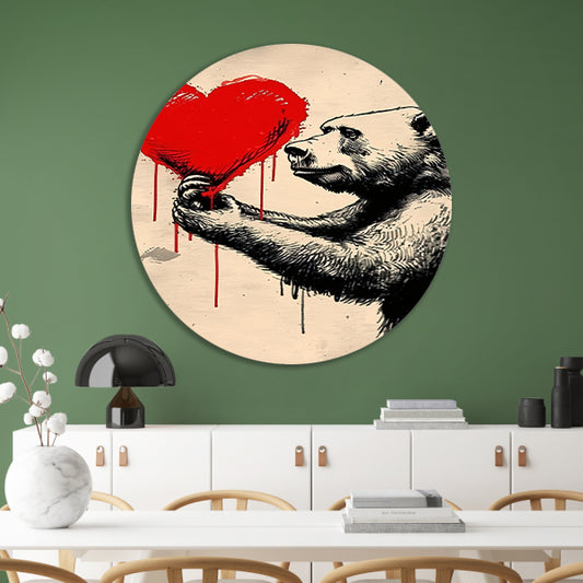 Oog en hartvorm handen in zwart en wit aluminium muurcirkel