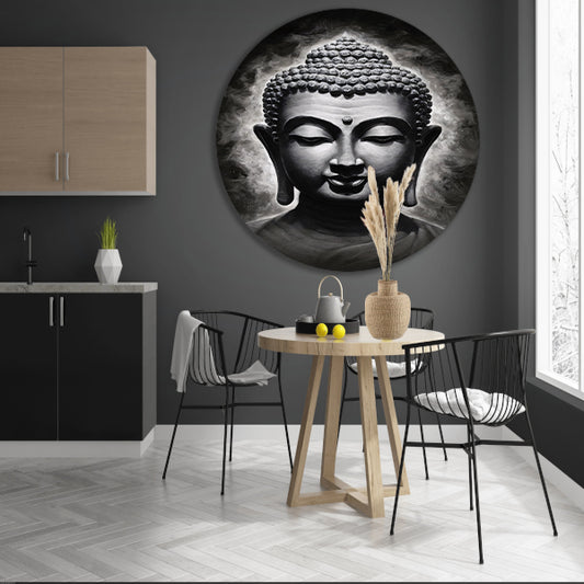 Serene Boeddha in Monochrome Tinten aluminium muurcirkel