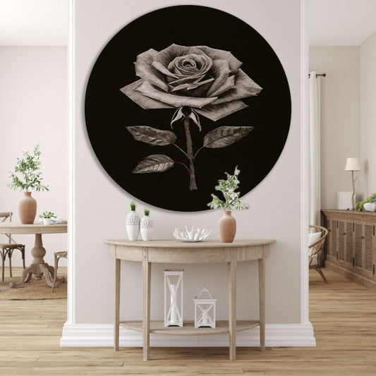Minimalistische Charcoal Tekening van een Roos aluminium muurcirkel
