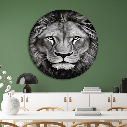 De Monochrome Blik van de Majestueuze Leeuw aluminium muurcirkel