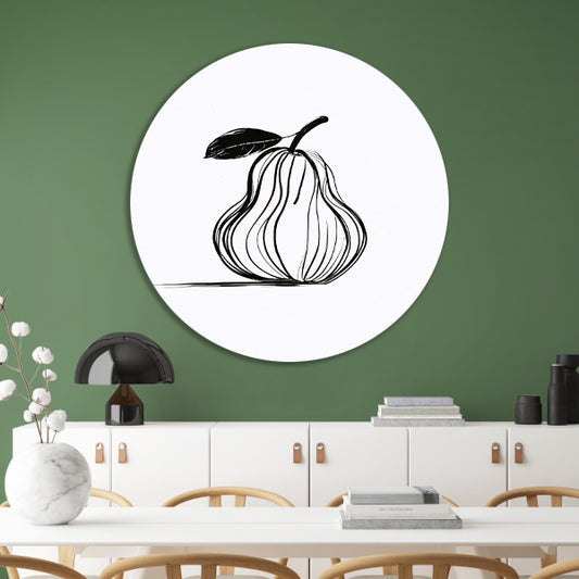 Minimalistische Lijn Kunst Peer met Blad aluminium muurcirkel