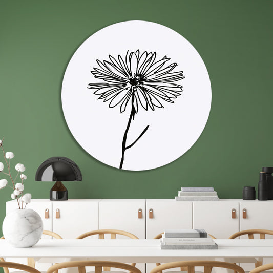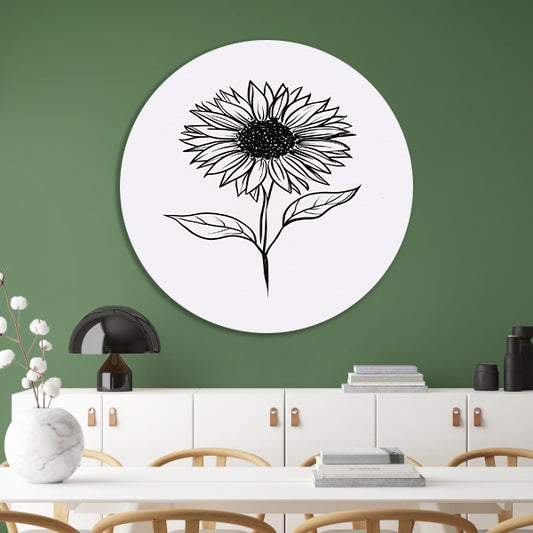 Minimalistische zwart-witte zonnebloem lijnkunst aluminium muurcirkel