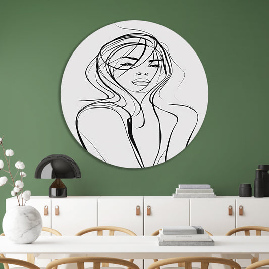 Modern portret in minimalistische lijn aluminium muurcirkel