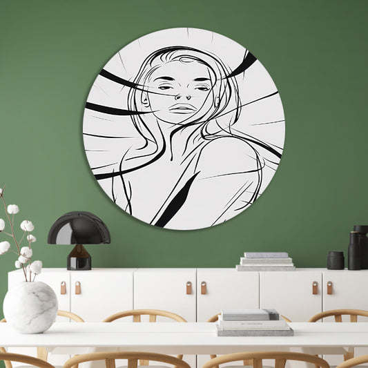Minimalistische lijnkunst van een elegant vrouwengezicht aluminium muurcirkel