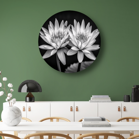 Monochroom Abstract Ontwerp in Zwart en Wit aluminium muurcirkel