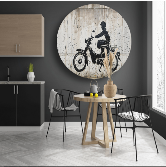 Silhouet motorrijder tegen betonnen achtergrond forex muurcirkel
