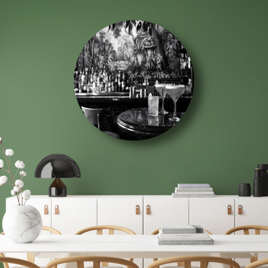 Elegante Zwart-Wit Cocktailbar Momentopname forex muurcirkel