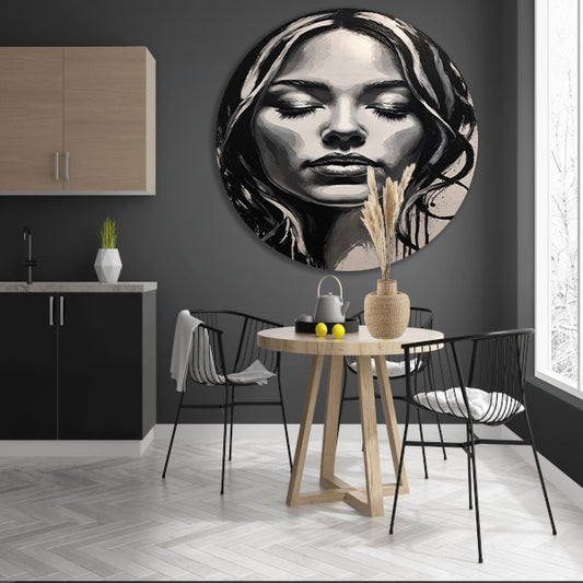 Dromend Vrouwengezicht in Monochroom Contrast aluminium muurcirkel