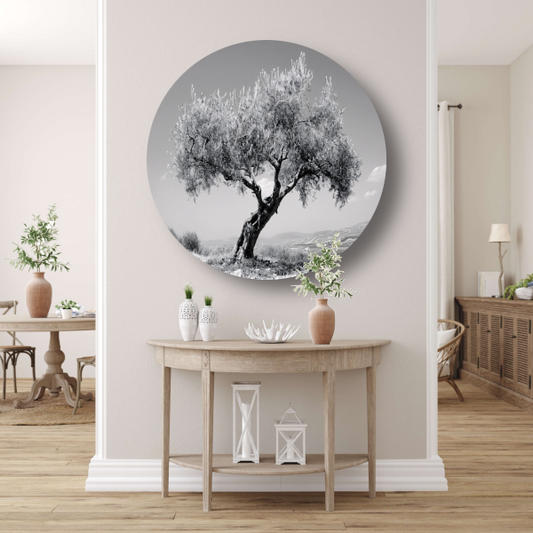 Klassieke Olijfboom in Zwart-Wit forex muurcirkel