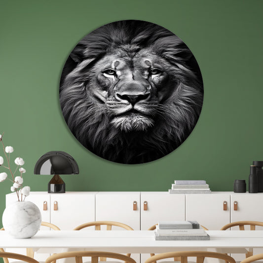 Zwart-witte Leeuw in Close-up forex muurcirkel