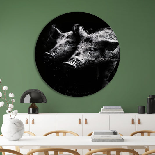 Intense blikken van zwart-wit varkens forex muurcirkel