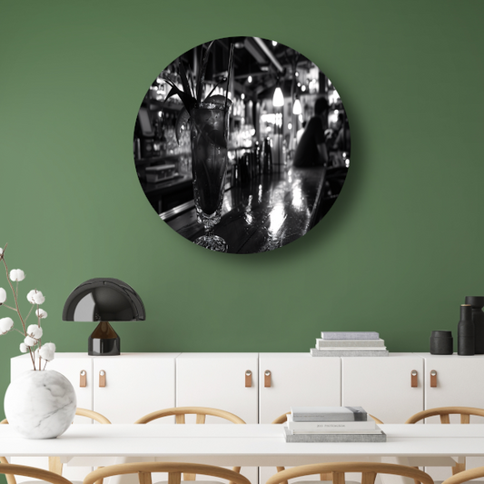 Zwart-wit cocktailglas op houten bar forex muurcirkel