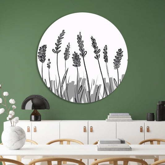 Minimalistische zwart-wit lavendel tekening aluminium muurcirkel