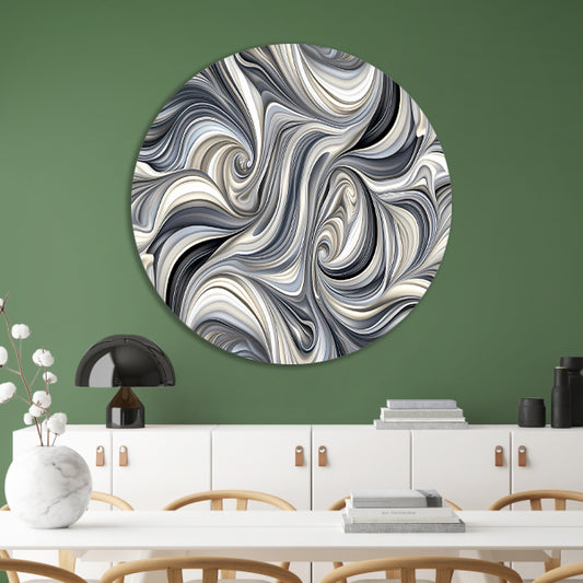 Moderne abstracte kunstprint in zwart en wit aluminium muurcirkel