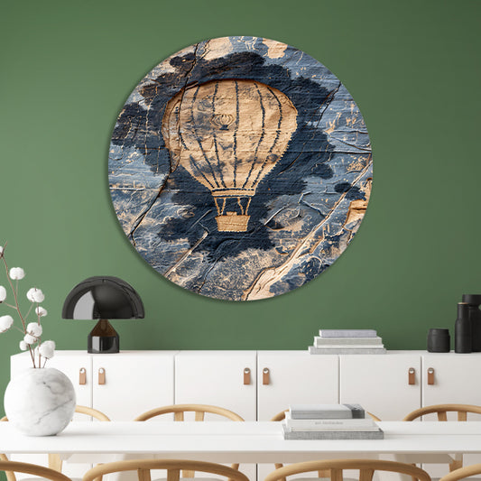 Monochrome luchtballon graffiti op verweerde muur aluminium muurcirkel