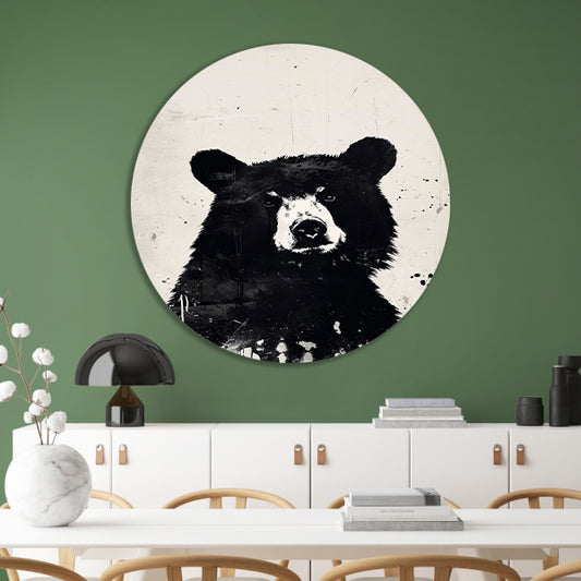 Monochrome Beer met Verfspatten aluminium muurcirkel