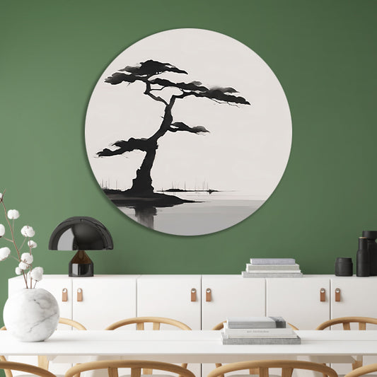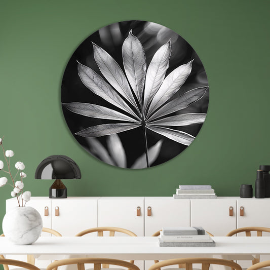 Zwart-Wit Minimalistisch Blad in Licht aluminium muurcirkel