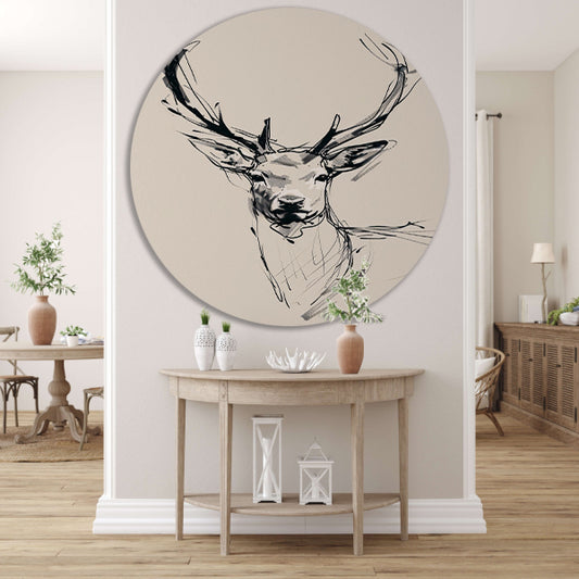 Elegante zwart-wit lijntekening van een hert forex muurcirkel